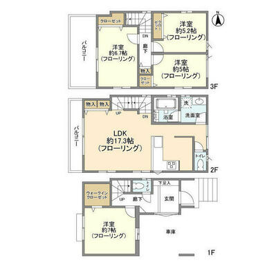 4LDK(洋7 LDK17.3 洋6.7 洋5.2 洋5) |